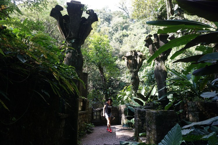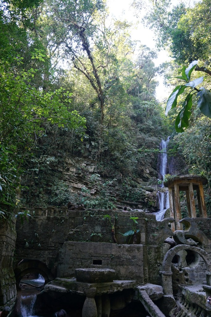 Visitamos el jardín surrealista de Edward James, tendré que decir que es mejor ir sin expectativas, que yo esperaba mucho y me sentí decepcionada, en realidad las construcciones me parecieron una copia sin terminar de la grandeza de Gaudí, pero me complace que la naturaleza ha hecho lo suyo y que la selva se mantiene intacta sobre el concreto en mal estado, me pareció mas una visión de una película futurista del fin del mundo, que una obra de arte. Pero en gustos se rompen géneros.