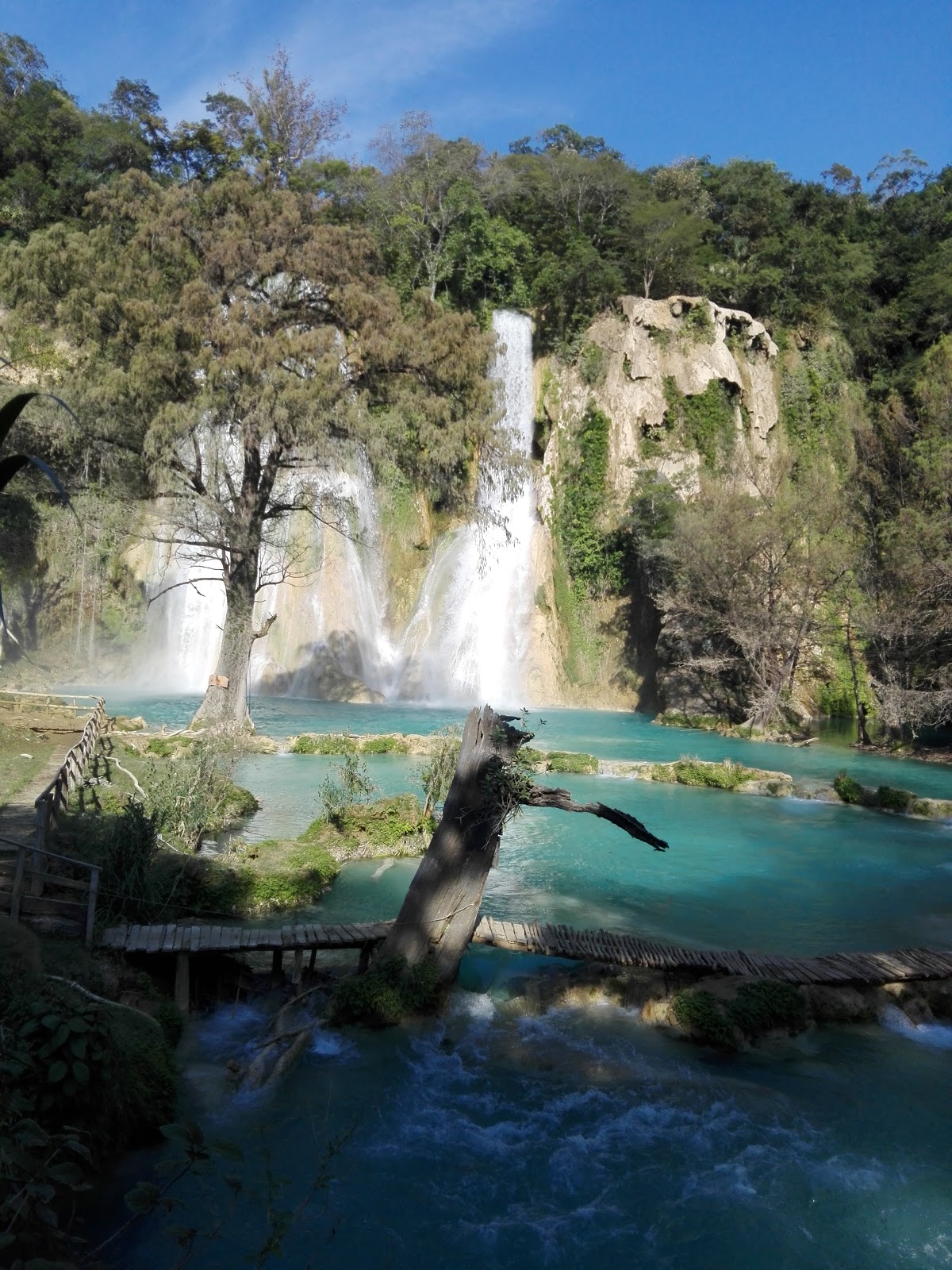 Nos lanzamos a MICOS un grupo de 7 cascadas que se encuentra a 1 hora de Ciudad Valles, el camino está bastante decente e incluso encontramos un lugarcito para desayunar, al llegar nos sorprendimos no imaginábamos tanta belleza, puedes tomar un barca y dar un paseo por el rio, o puedes lanzarte a la aventura de brincar las 7 cascadas, es toda una experiencia guiada por un profesional, el agua es helada y hay que saber nadar bien pues hay tramos en donde hay que cruzar nadando para llegar a la siguiente cascada y por supuesto una vez que lo empiezas hay que acabarlo ya que no hay retorno caminando. Para los que no son afectos a la adrenalina pueden nadar en las pozas, o simplemente chapotear en el rio, hay lugares para comer, y lugar para acampar. Antes de llegar a Micos hay un hotelito muy mono donde puedes pasar la noche cómodamente. Parador Huasteco Jesús María.