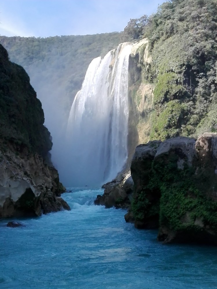 Para llegar a Tamul hay que tomar una lancha en La Morena un embarcadero que está a 26 km de Aquismon, ahí hay lanchas todo el día, sorpresa! Hay que remar 2 horas para llegar a la Cascada de Tamul, no usan lanchas de motor para no contaminar el rio, bravísimo!!, así que a darle contra corriente, nos hemos divertido mucho, ya que hay 3 rápidos suavecitos, algunos lancheros bajan a la gente y los pasan por la orilla, nosotros éramos 6 y los pasamos remando jajajaja, después de este buen logro llegamos a la cascada para comprobar que ha valido la pena el esfuerzo la cascada es majestuosa, no por nada la visitan turistas de todas partes del mundo.