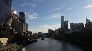 Ya para la hora de la comida llegamos a la zona de South bank a un lado del rio Yarra vaya sorpresa!, un andador de ambos lados del río lleno de restaurantes muy agradables en donde los residentes suelen tomar el trago o el café en su time off, así todos los restaurantes llenos de ejecutivos crean un muy buen ambiente. Algunos tienen promociones que por 25 aus dlls comes súper bien y te acompañan el menú con una buena copa de vino.