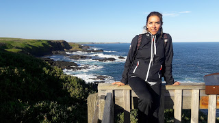 Regresamos por la famosa Ocean Road uno de los lugares naturales más impresionantes que hemos visto, Esta ruta que va a lo largo de la costa con cuevas, riscos y hermosas formaciones rocosas, creadas con el paso de los años por las tormentas y las mareas altas, el clima nos ha regalado además un arcoíris espectacular sobre el mar y se puedo ver completo de lado a lado, los muchos carros que vamos recorriendo el camino nos hemos detenido a tomar fotos pues es en verdad un espectáculo. Hay pueblitos muy monos como Lorne, Apollo Bay y Port Campbell, en toda la Ocean road en donde puedes parar a comer y tomar una buena copa de vino con vista al mar, el que mas nos ha gustado es Lorne además es un verdadero espectáculo ver a los surfistas cruzando la carretera con sus tablas hacia el mar, esto es totalmente nuevo para nosotros.