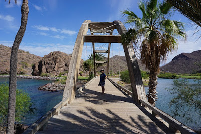 Nuestro hotel está a 20 km de Loreto y empieza a oscurecer, así que nos vamos directo, el hotel www.loretobayresort.com es toda una sorpresa, esta muy lindo que felicidad además de tener un corredor de restaurantes, cafecitos y galería, los jardines están lo máximo, además tenemos 1 hora de kayak y 1 hora de bici por día incluidos en el precio así que está garantizado que la pasaremos genial.