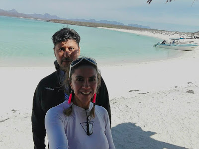 Estamos muy emocionados, no hemos llegado y el paisaje es espectacular del lado izquierdo la sierra de la Giganta, del lado derecho el océano con un montón de islas.