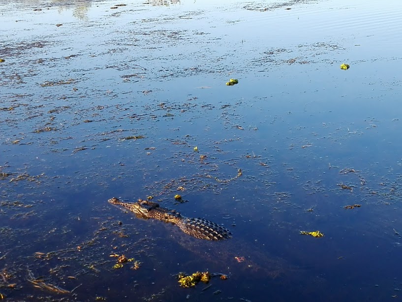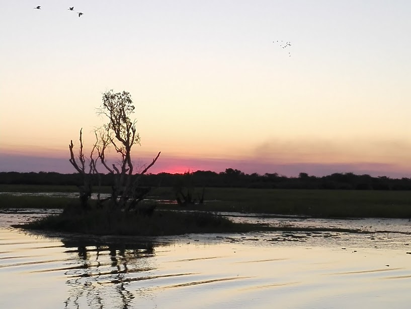 Hemos visto el atardecer más hermoso de nuestra vida, en medio de un ambiente totalmente natural, lleno de cantos de aves, rodeados de cocodrilos y la vegetación más exótica que hemos visto jamás, imágenes que guardaremos por siempre en la memoria.