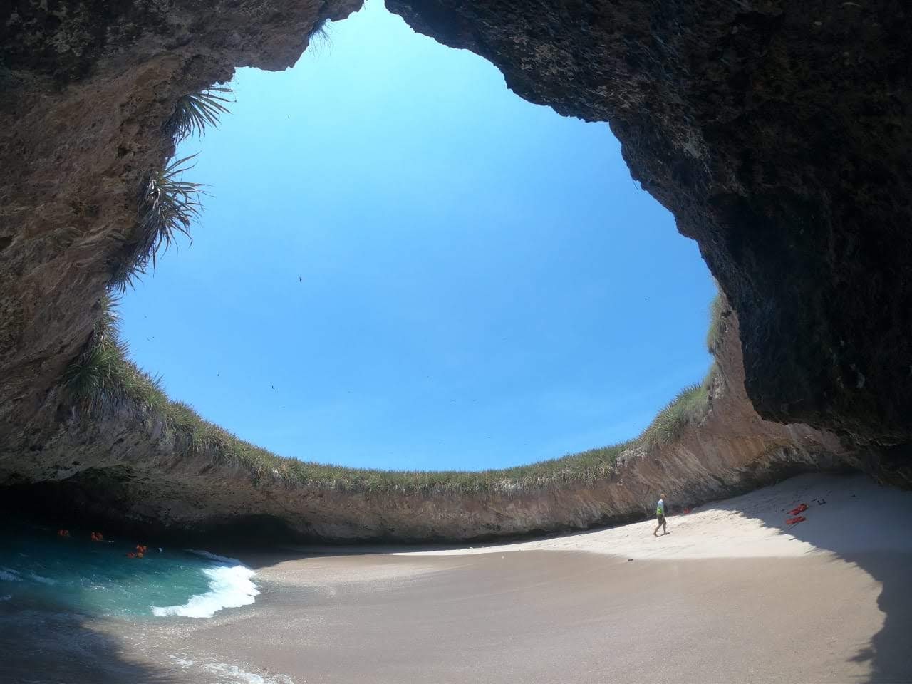 Nadar sobre las olas para cruzar el túnel y llegar a la playa del amor ha sido toda una aventura que nadie nos había contado, la marea sube constantemente y esto ocasiona que el mar se pique y las olas sean muy altas, lo bueno es que los guías nos dieron un casco por aquello de si la cabeza pegaba con las rocas, además es importante comentar que es muy cansado, lo poco que se avanza viene la ola y lo hecha para atrás, así que para no desgastarse mucho lo mejor es dejarse ir con el vaivén de la ola y en una de esas logramos llegar a la playa, por dentro esta increíble y lo disfrutamos mucho, solo nos dieron 20 minutos para poder tomar video y fotografías y disfrutar del lugar, después nos tomó un poco más de tiempo salir pues las olas altas cerraron por momentos el acceso y cuando al fin lo logramos tuvimos que nadar contra corriente hasta llegar a la panga que nos estaba esperando, fue una experiencia fantástica y muy cansada, esta actividad no es recomendable para niños ni para personas que no sepan nadar muy bien o se cansen rápidamente. No está permitido el uso de drones ya que es reserva protegida, de igual forma es recomendable tomar el tour con una empresa responsable ya que si Semarnap no permite el acceso el costo no es reembolsable. Nosotros contratamos con /www.vallartatravelrewards.com y nuestra experiencia fue fantástica en todo momento estuvieron pendientes de nosotros.