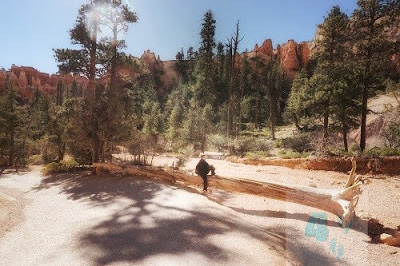 Caminando entre Hoodoos, también llamados «Chimenea de las Hadas».