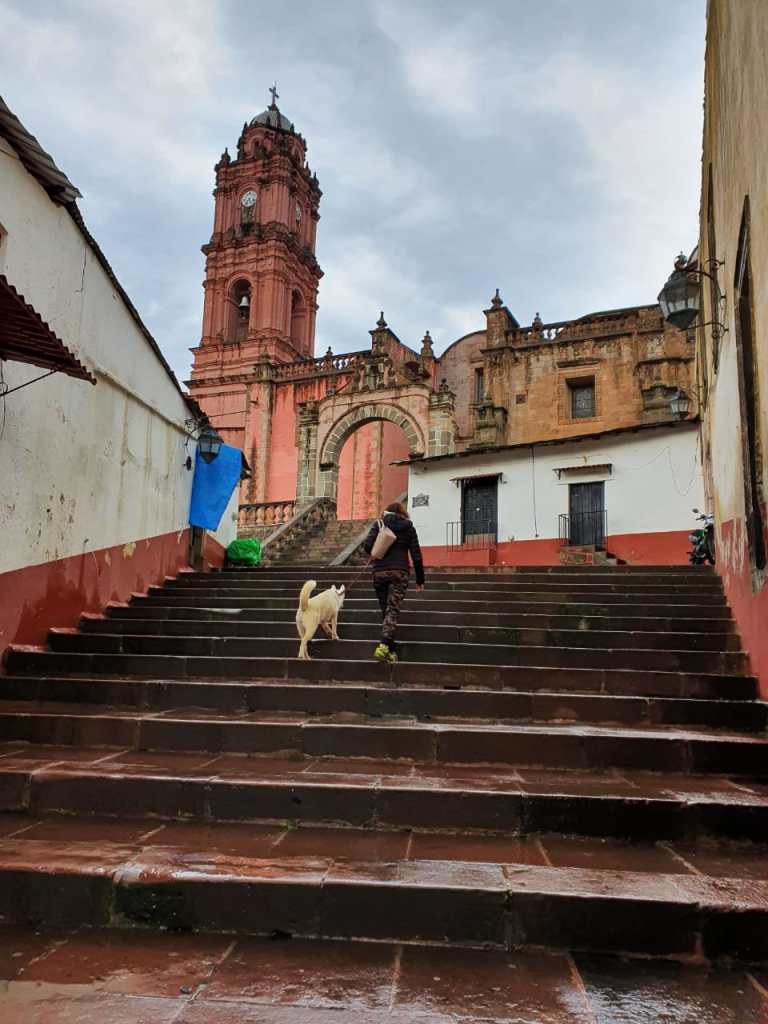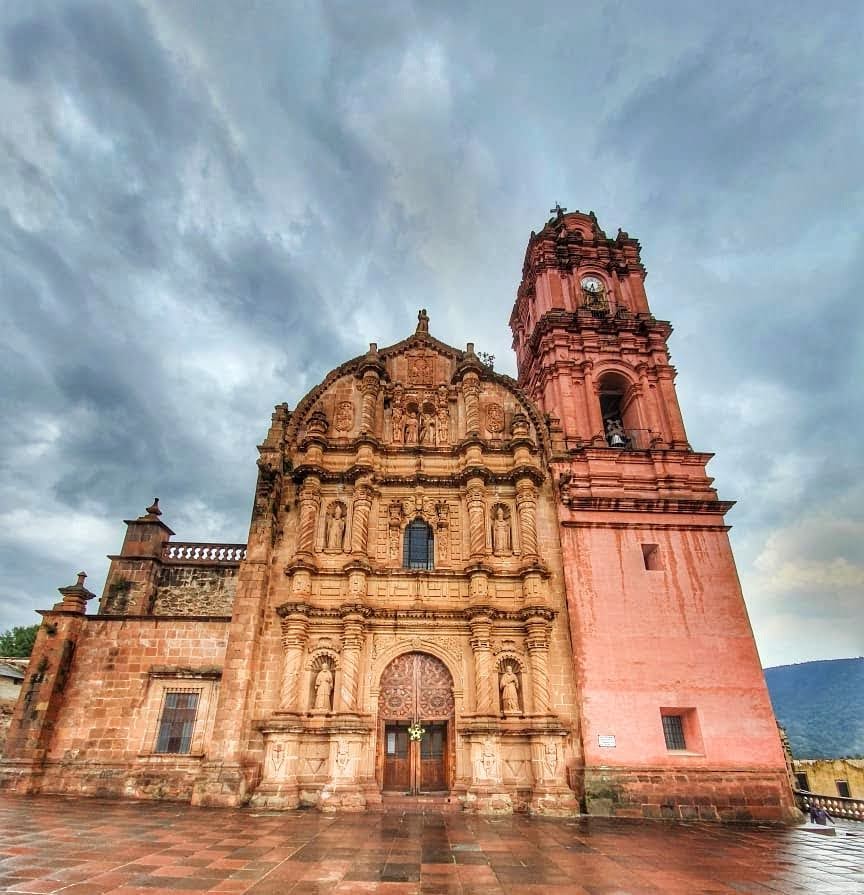 La Iglesia Principal es la Iglesia de Nuestra Señora del Carmen y es chulisima! estilo barroco y neoclásico fue la sorpresa del viaje. se encuentra en la parte mas alta del pueblo y nunca imaginamos tremenda construcción de cantera rosa y aquí la historia del porque hasta arriba.