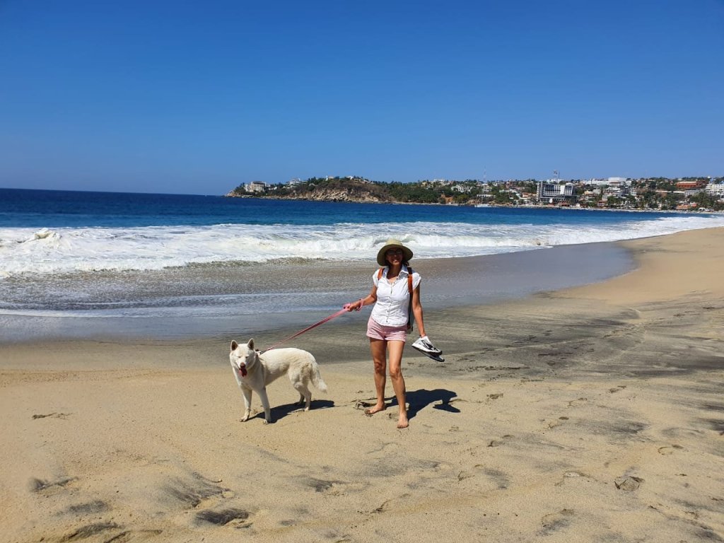 Zicatela si es pet friendly y además esta muy cool, calles amplias con estacionamiento sin costo, un corredor turístico con restaurantes de todo tipo, la playa es enorme y las olas son espectaculares! Al final decidimos comer en restaurante Isha de playa Kabbala y fue una delicia. Pero Bely esta sufriendo mucho con el calor asi que mejor nos regresamos para poder refrescarnos y terminar el día en la playa de Mazunte.