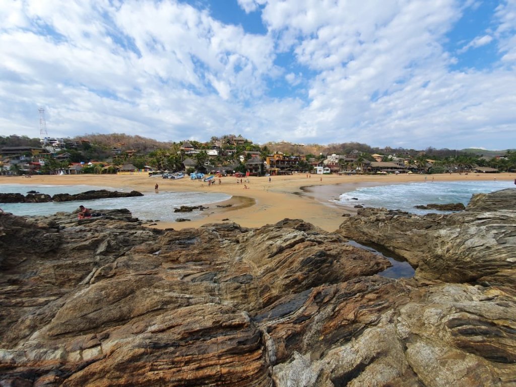 San Agustinillo es el pueblo intermedio entre Mazunte y Zipolite y aunque no lo parece porque es aun más pequeño y hay que tomarse el tiempo de encontrar estacionamiento la playa es espectacular! Se vale pasar el dia completo disfrutando de este ambiente surfista, hay 2 escuelas y están practicando surf todo el tiempo, las olas igual son muy altas, la ventaja es que tiene una pequeña bahía con una playa rocosa donde se puede chapotear a gusto y tiene la roca poza desde donde se puede disfrutar la puesta de sol muy a gusto. San Agustinillo ha sido la cereza del pastel.