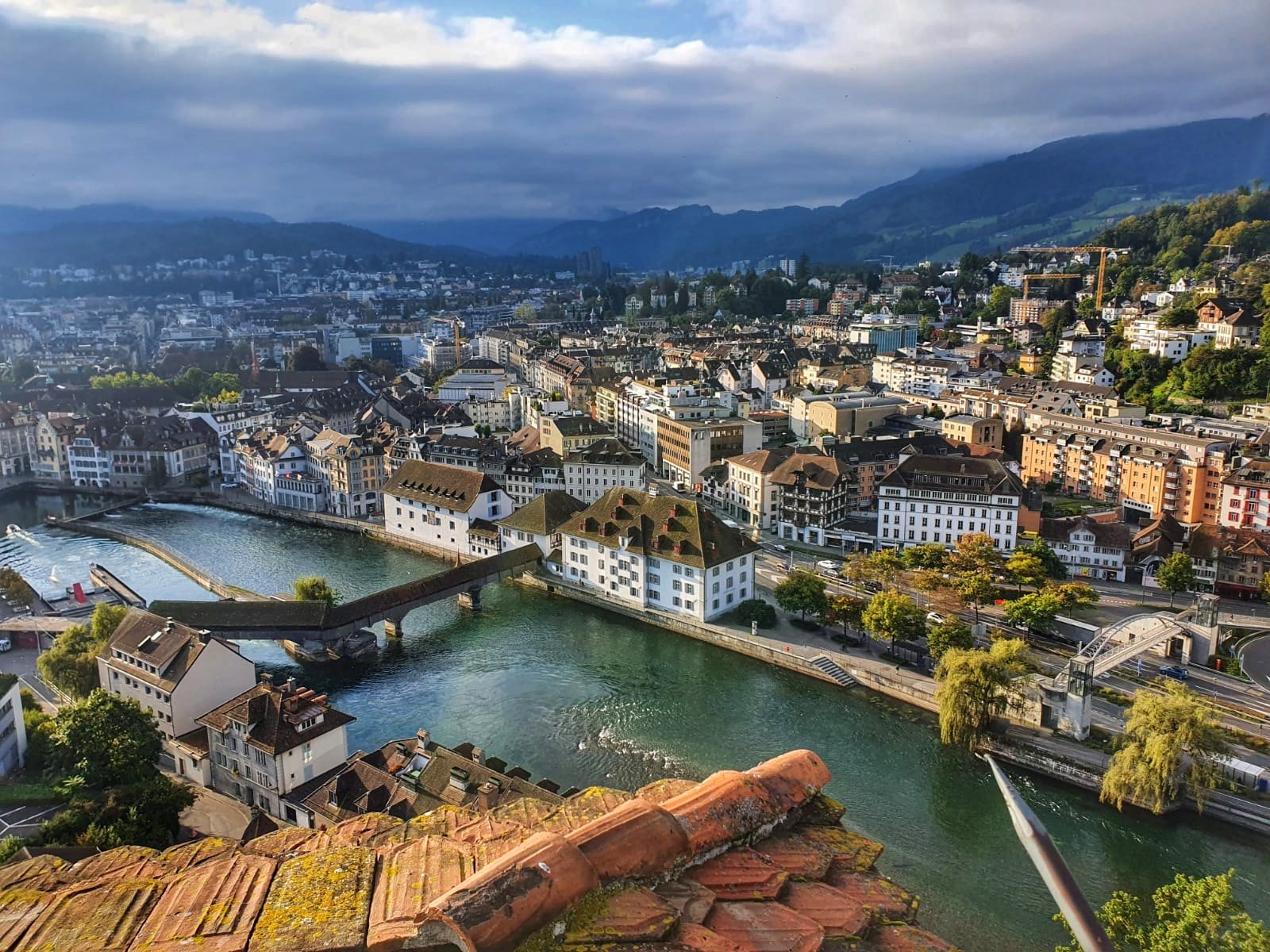 Lucerna es encantadora y disfrutar comer y/o caminar a la orilla del lago o del rio al atardecer es muy agradable.