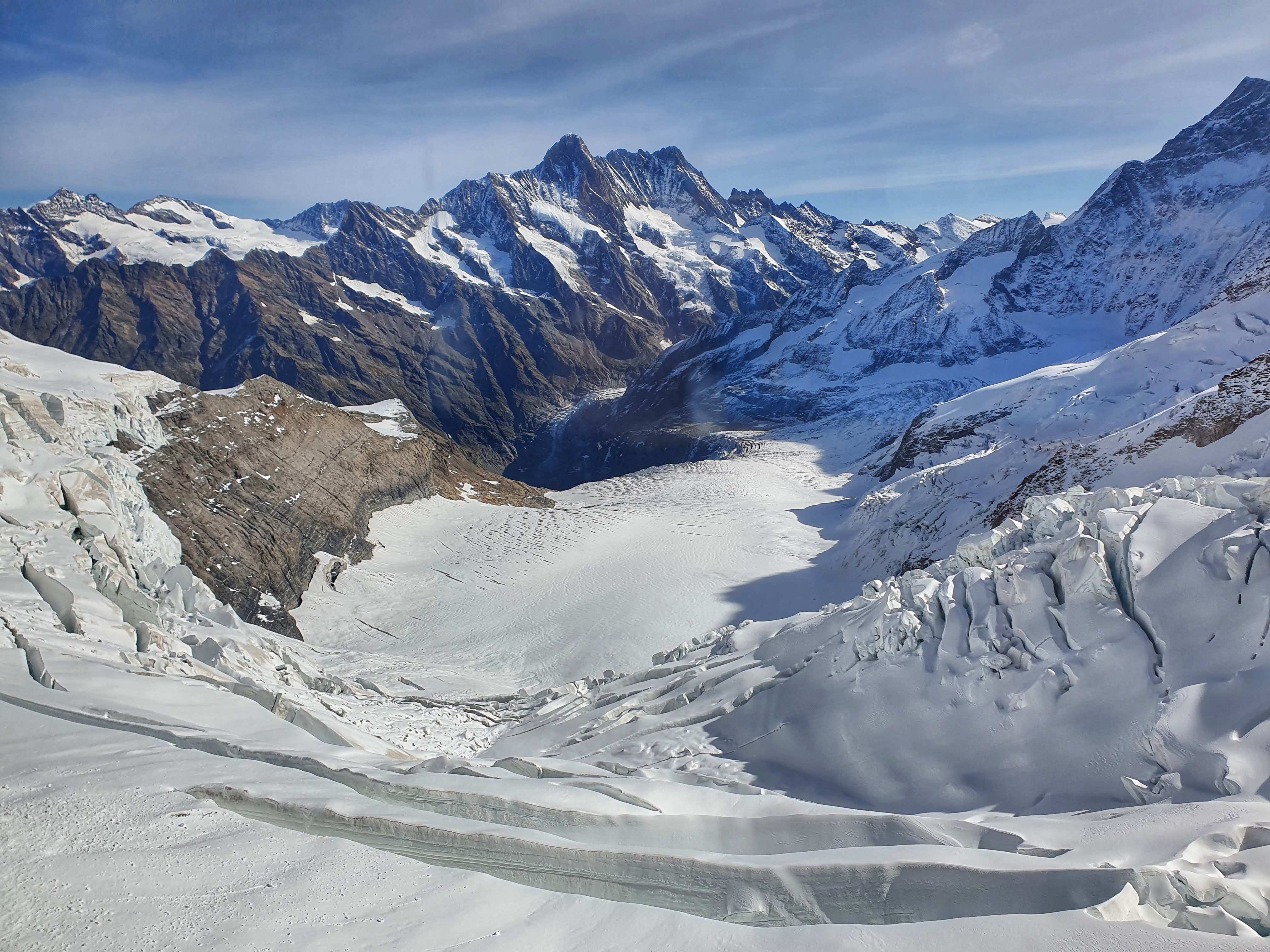 Dia 2.- Visita a Jungfraujoch el puerto de montaña con el glaciar mas grande de Europa, para llegar tomamos el tren que nos llevo a Kleine Scheidegg donde transbordamos hacia la central donde tomamos el tren que nos llavaria directo a Jungfraujoch, hay mucha gente aun en pandemia, por eso lo mas recomendable es subir lo mas temprano para aprovechar la escala que hace en el mirador del glaciar, todo esta incluido en el jungfraujochpass y es mas economico comprar este pase que pagar por el viaje individual que tienen un costo de 100 CHF, entre escalas y llegada tardamos como 1 hora 15 min. El paisaje es espectacular y vale la pena hacer algún sendero desde Kleine Scheidegg hacia abajo.