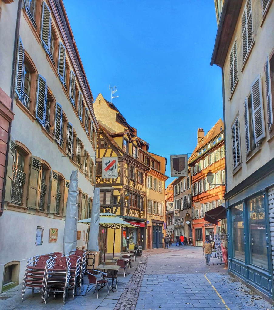 Catedral Gótica de Notre-Dame.- Una de las más bellas y espectaculares que hemos visto, con una altura de 142 metros por 2 siglos fue la más alta del mundo, la catedral de Notre Dame es una delicia a los ojos con sus enormes vitrales y su historia de horror ya que justo antes de los ataques del 11 09 fue desactivada una célula terrorista que pensaba volar la catedral en las fiestas navideñas. Cuenta con espectáculos diarios de su reloj astronómico y vistas panorámicas del río Rin desde su chapitel. Justo afuera de la catedral se estaciona el mini tren que realiza el recorrido por todos los puntos que menciono abajo, excepto Barrio Europeo y Saint Madeleine y su costo es de 8 euros por persona. En la esquina se encuenttra la casa mas antigua de la ciudad que ahora es un famoso restaurante.