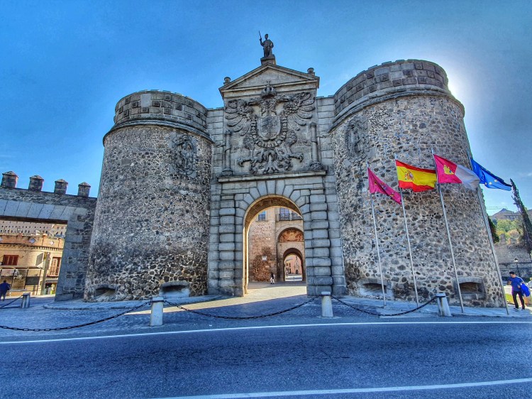 Puerta de Bisagra.- Esta es la entrada obligada al casco viejo, es la parte mas emocionante de la muralla, tiene muchas leyendas pero la que nos encanto fue la del Angel guardian, el mismo que se encuentra sobre el frente de la puerta al que le falta un ala porque se la tiro un rayo y dice asi. «Cuando llego la peste a Toledo el Angel desenvaino su espada y le nego la entrada, la peste le dijo no tengas miedo solo vengo a matar a siete y el Angel la dejo entrar, murieron siete mil y el Angel muy triste le reclamo a la peste me mentiste! dijiste que solo moririan siete a lo que la peste respondio no te he mentido solo mate a siete a los demas los mato el panico.» Asi esta puerta que en su momento fue donde se recibia con biombos y platillos a grandes personalidades y tambien se daba el ultimo adios a los muertos, impresiona su belleza arquitectonica.