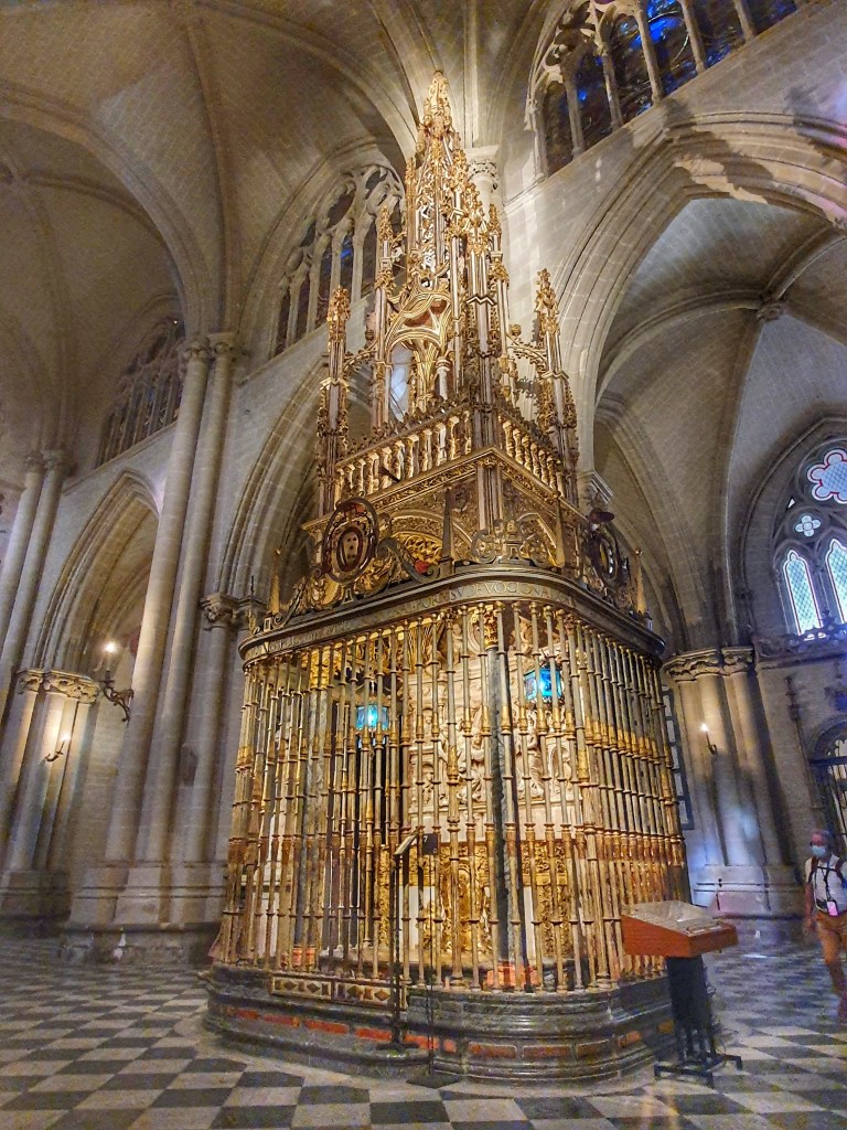 Catedral primada de Toledo.- Es enorme y ostentosa, la cantidad de oro que hay literal ofende, sobre todo cuando se sabe del sufrimiento histórico de los pueblos indígenas americanos provocado por la explotación del oro, como sea la construcción es monumental de estilo gótico construida en el año 1226 y está considerada el opus magnum de este estilo en España. Precio horario