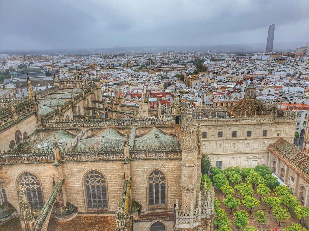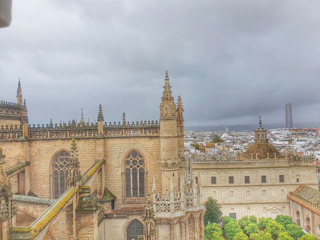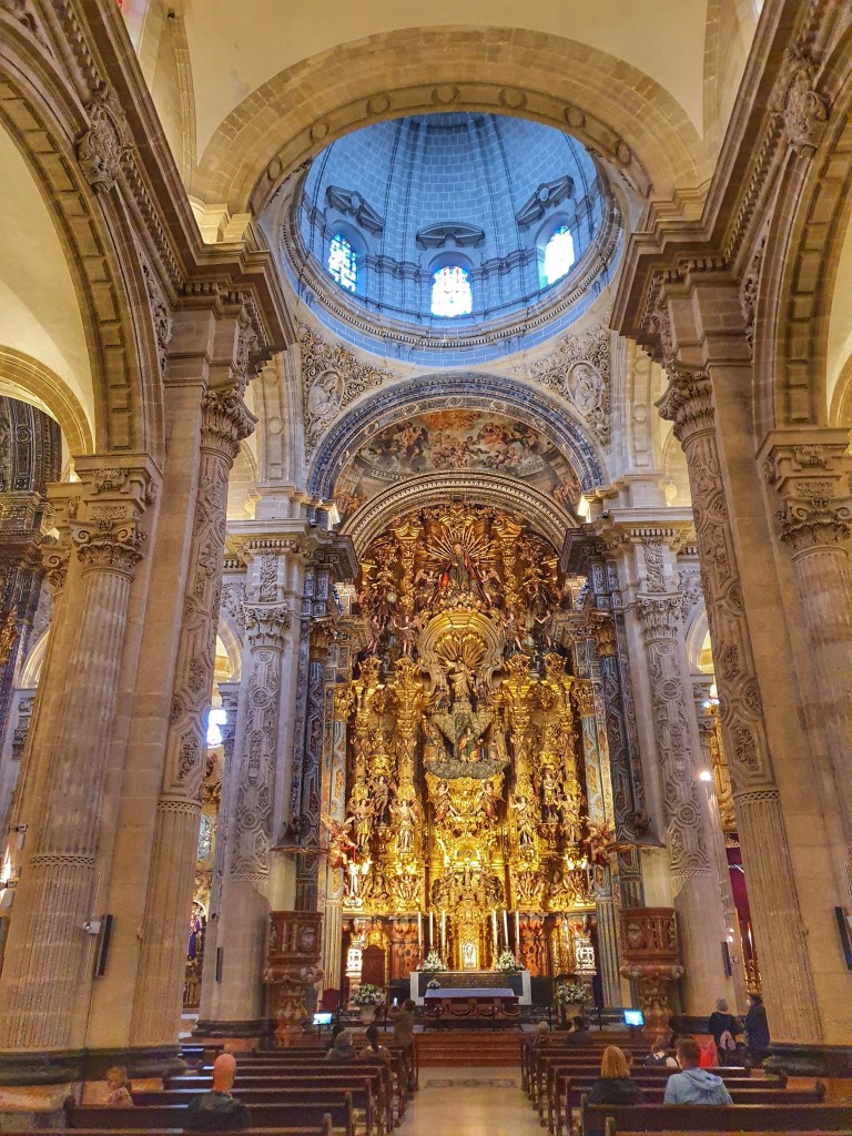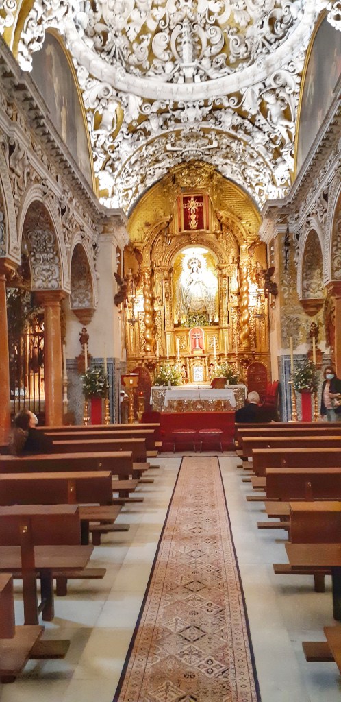 Catedral de Santa Maria de la Sede y la Santa Asunción de Sevilla.- De arquitectura morisca, con 105 metros de altura e inaugurada en 1528, la catedral es una verdadera obra de arte y desde su torre campanario o Giralda se tiene una vista espectacular de las cúpulas y la ciudad de fondo. La entrada tiene un costo de 11 euros si compras en linea https://www.catedraldesevilla.es/visita-cultural/horarios-y-tarifas/ o 12 euros si compras directo en taquilla, mas 5 euros si quieres la audioguia. La catedral es un museo de reliquias elaboradas en oro, así como sus altares, no es una catedral pequeña, recorrerla nos tomo aprox 2 horas con la subida a la torre campanario, subir a la torre es a traves de una rampa lo que lo hizo mas fácil y en el camino hay varias ventanas desde donde se tienen las mejores vistas, la belleza de la catedral es incomparable pero en realidad lo que nos dejo sin palabras fue la cantidad de oro que hay en su interior. Horario de lunes a sabado 10:45 – 18:00 Hrs. Domingos de 14:30 – 19:00 hrs.