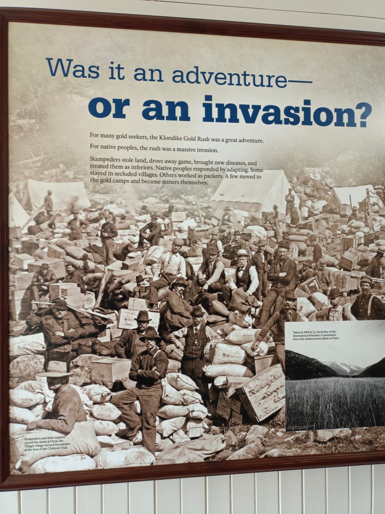 Parque Histórico de la fiebre del oro Klondaike.– Es lo primera parada cuando llegas al pueblo porque es aquí donde esta el centro de visitantes donde obtienes toda la información y mapas del lugar. Es gratuito aquí es donde con fotografías de esa época y la historia contada en cada una de ellas nos explican como se formo Skagway.