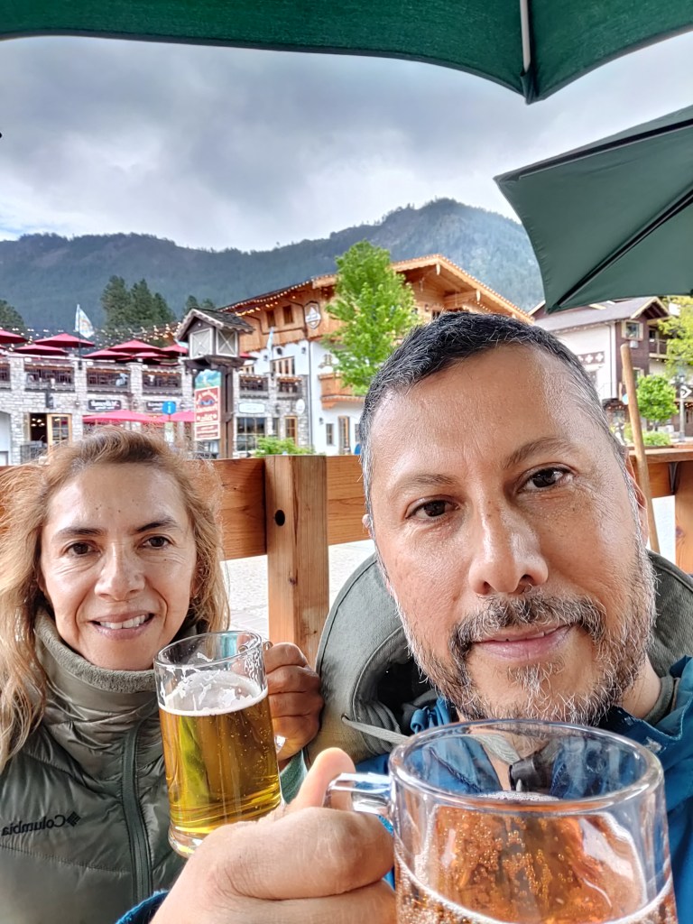 Con la caminata nos ha dado mucha hambre así que paramos en Munchen Haus la casa de la salchicha y el pretzel, la verdad aquí se come riquísimo, se bebe muy buena cerveza y se disfruta de lo lindo el ambiente. Hay cervecerias, hoteles, neveria (su helado de cereza es la gloria) panadería fina (el pan danes yooomi) y muchos restaurantes sobre la calle principal y la calle posterior a la principal, no hay pierde solo hay que caminar por la avenida principal que esta cerrada a la tráfico vehicular y las 2 calles continuas, pero lo mejor es a partir del atardecer, el espectáculo de luces es sensacional! nos sentimos en una villa navideña solo faltaron los niños patinando en el lago congelado, porque también hay paseos en carreta jalada por esos hermoso caballos peludos, pero si esto es en abril puedes imaginarte como es en diciembre? con Santa klaus caminando por la calle, carritos de castañas y duendes repartiendo publicidad, si, asi exactamente es.