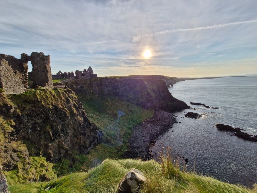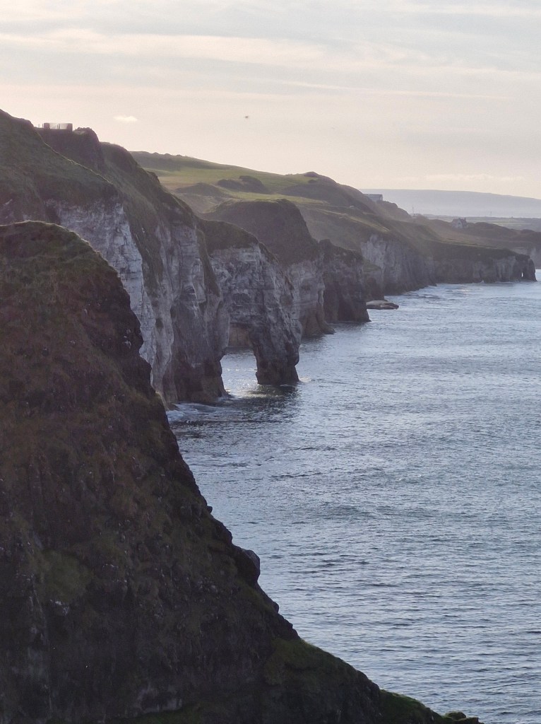Ballycastle. Es un pintoresco pueblo costero donde se puede caminar por su playa de arena dorada con una excelente vista de la Isla de Rathlin, a la que se puede llegar en ferry desde aqui en un trayecto de solo 25 minutos. En auto se puede llegar a Fair Head un impresionante acantilado de 200 metros que tiene senderos marcados para amantes del senderismo. Hay aparcamiento gratuito en Ballycastle harbour, también hay gasolinera y tiendas de conveniencia.