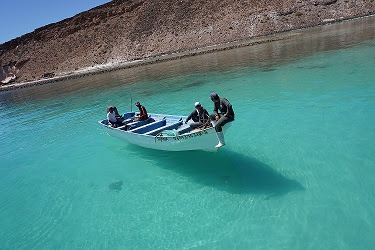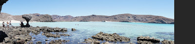 Estamos muy emocionados, no hemos llegado y el paisaje es espectacular del lado izquierdo la sierra de la Giganta, del lado derecho el océano con un montón de islas.