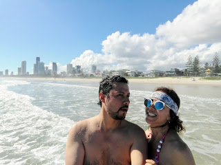 Aquí igual que en Sídney hay que pasar la tarjeta al abordar y al bajar del autobús, si lo olvidas como yo, perderás en promedio 8 dólares. Ya sé, me nublo la razón la emoción, es increíble las playas están espectaculares y limpias!! Y llenas de surfistas, y el ambiente es divertidísimo, el agua es muy fría, pero hace mucho calor así que un chapuzónse agradece, en Surfers Paradise esta la zona comercial donde encuentras restaurantes y tiendas para todos los gustos, nosotros comimos en uno de comida griega y ha sido todo delicioso, vamos por una caminata mas mojando estos 4 pies viajeros antes de volver a la ciudad.
