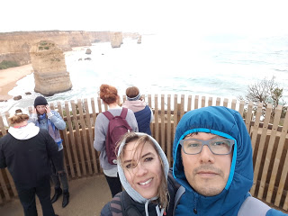 Bueno hemos hecho 3 horas de camino y está lloviendo mucho así que nuestra visita a los 12 apóstoles que en realidad son solo 7 formaciones rocosas esculpidas por el tiempo que emergen del mar como gigantes, algo tenemos con las rocas nosemociona terriblemente estar frente a estos gigantes que han visto pasar el tiempo por milenios.Es una maravilla natural y debido al mal tiempo nos hemos tenido que ir sin conocer el London bridge.