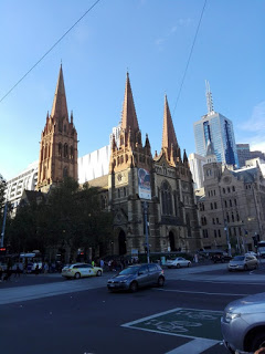 Después seguimos recorriendo la ciudad, vaya que el centro tiene construcciones antiguas estilo Inglés, que a nuestro parecer son bellísimas, la estación de trenes, y el parlamento, incluso el antiguo edificio de correos. En la calle Queens está el corredor de las tiendas, por cierto nada económico pero por ver no se paga así que caminamos y caminamos hasta llegar al mercado al que le llaman el corazón de Melbourne, qui el mejor lugar para comprar, pues encontramos verdaderas ofertas de souvenirs y afuera se encuentran también varios restaurantes, mas economicos que en el centro, igual afuera de la estación de trenes hay varios locales de comida rápida nosotros comimos sushi muy bueno y a buen precio. En el centro se puede tomar el tranvía rojo número 00 que es gratuito, hace un circuito corto pero se puede bajar y subir las veces quese quiera.