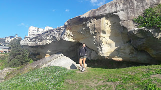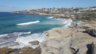 Tamarama Beach, que es usado por la comunidad para correr y hacer caminata, hay muchas formaciones rocosas con fósiles marinos, es espectacular!!, tiene diversos puntos como miradores desde donde se pueden observar decenas de surfeadores casando olasy también la piscina de entrenamiento de los salvavidas, la playa es una delicia solo que en otoño el agua es muy fría y corre un viento frio, pero aun así Bono se metió a nadar, aprovechando que no era temporada alta de medusas. Para comer hay gran variedad de restaurantes en el corredor de la playa,muy rico y buen precio es increíble se nos ha pasado el día.