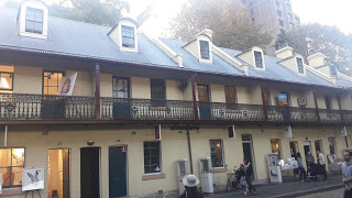 Bueno ya con la panza llena nos vamos a caminar, empezamos buscando el camino a Harbour bridge, después de rodear mucho por fin dimos la cuenta que es muy fácil siguiendo el camino de la calle Cumberland, y llegamos a Los Rocks, el barrio donde se encuentra el mercado y los domingos se pone el tianguis, y entre semana hay puestos de comida y restaurantes, tiene un toque muy pintoresco rodeado de edificios Victorianos antiguos,